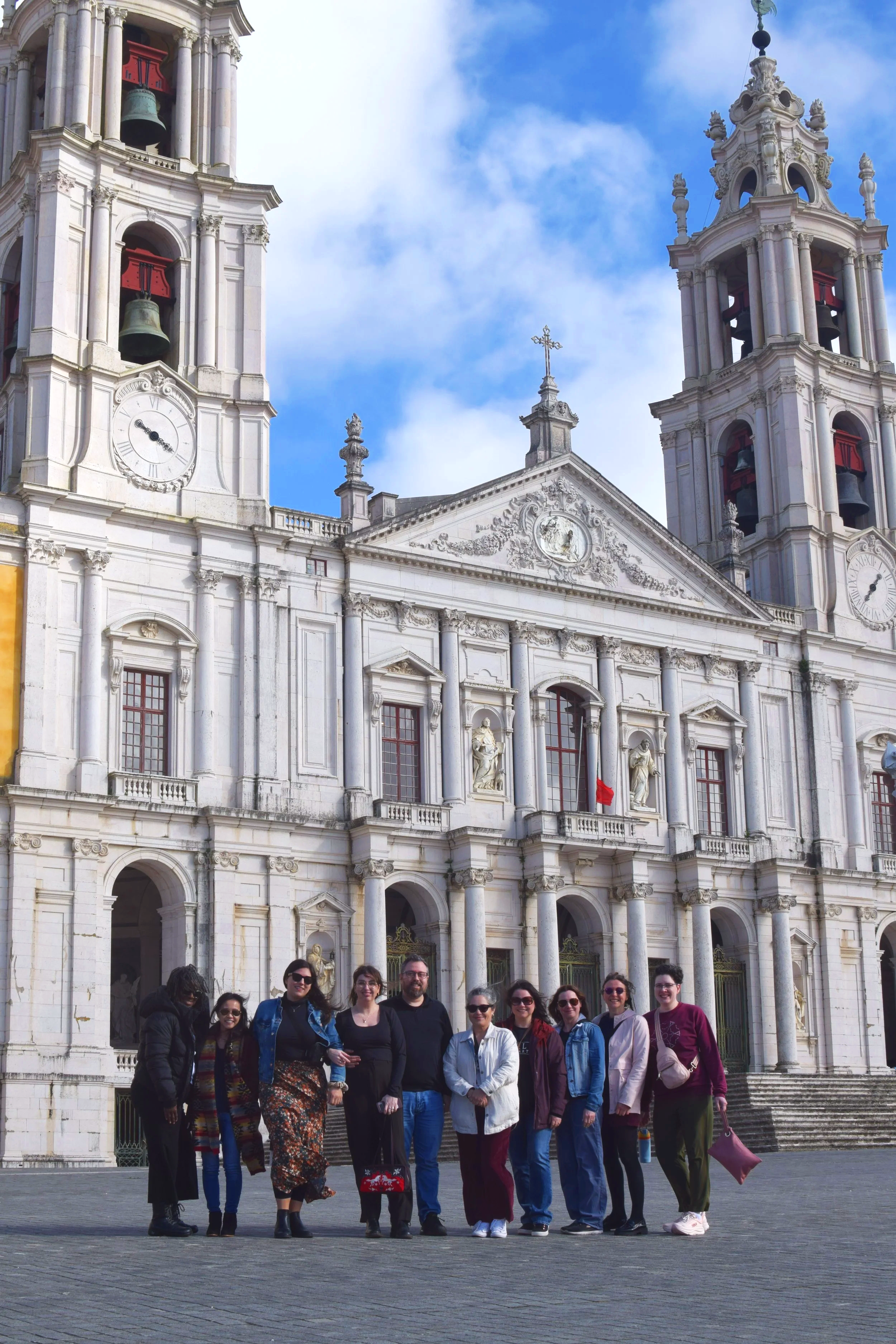 After a delicious lunch at O House, we headed to Mafra Palace. This UNESCO World Heritage Site is only 15 minutes from Ericeira and is a stunning example of Baroque architecture, as well as Portugalโs history, art, and culture. We marveled at the impressive exterior, then headed inside the historic halls. The Palace library was particularly inspiring, and we had a great time learning about the libraryโs rare books and the bats that live inside, eating harmful insects and helping preserve the books.
