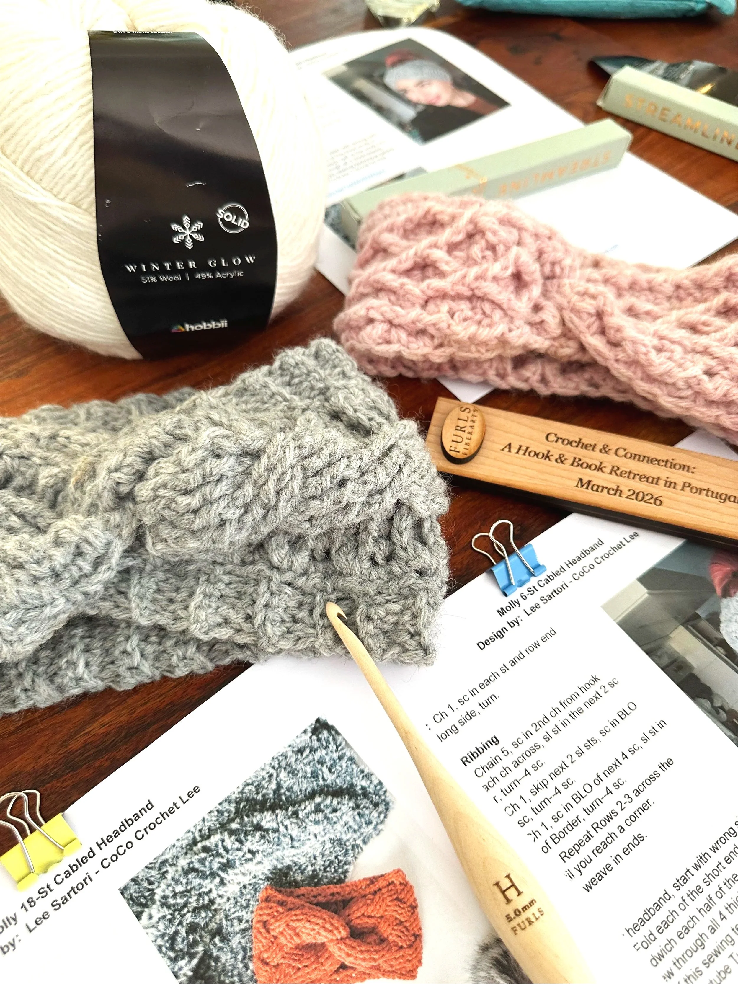 For the first full day of the retreat, Lee got things rolling with a cables workshop. For many crocheters, cables can feel intimidating and out-of-reach, but by the end of the class, participants were well on their way to finishing their very own cabled headbands.