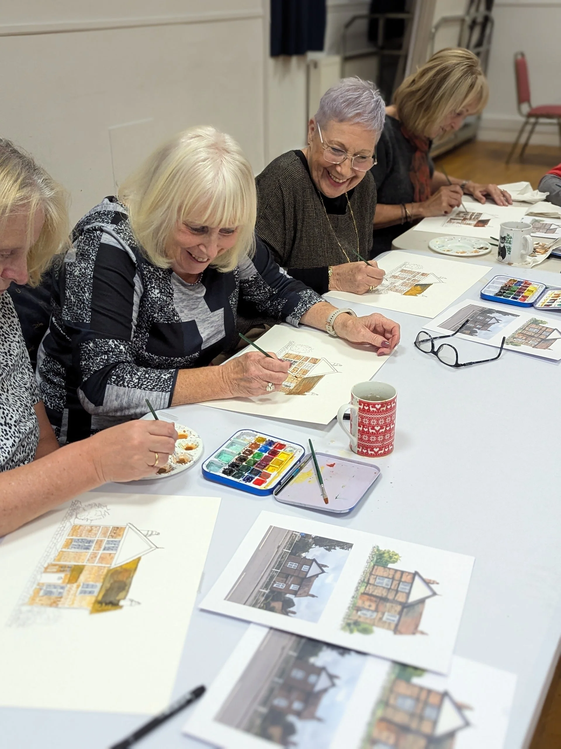 • After breakfast, dive into a workshop on architectural painting. With the help of a guided sketch-along and in-depth explanations from Sarah, you will unlock useful techniques to help you accurately depict brickwork, stone, and foliage.